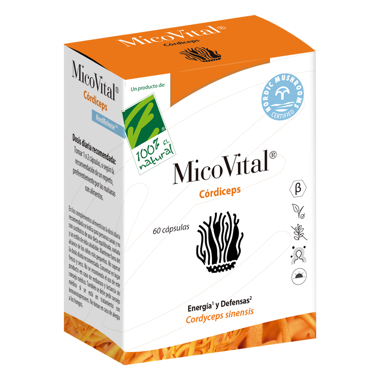MicoVital® Cordiceps is a food supplement based on extract of the cordiceps mushroom (Cordyceps sinensis CS12). In this mushroom, instead of the fruiting body, we use mycelium, because that is where the active ingredients of interest are found, which is why it is the only fungus in which mycelium is currently authorized to be used as a dietary supplement. It contains polysaccharides known as beta-glucans and nucleosides (most notably cordycepin).